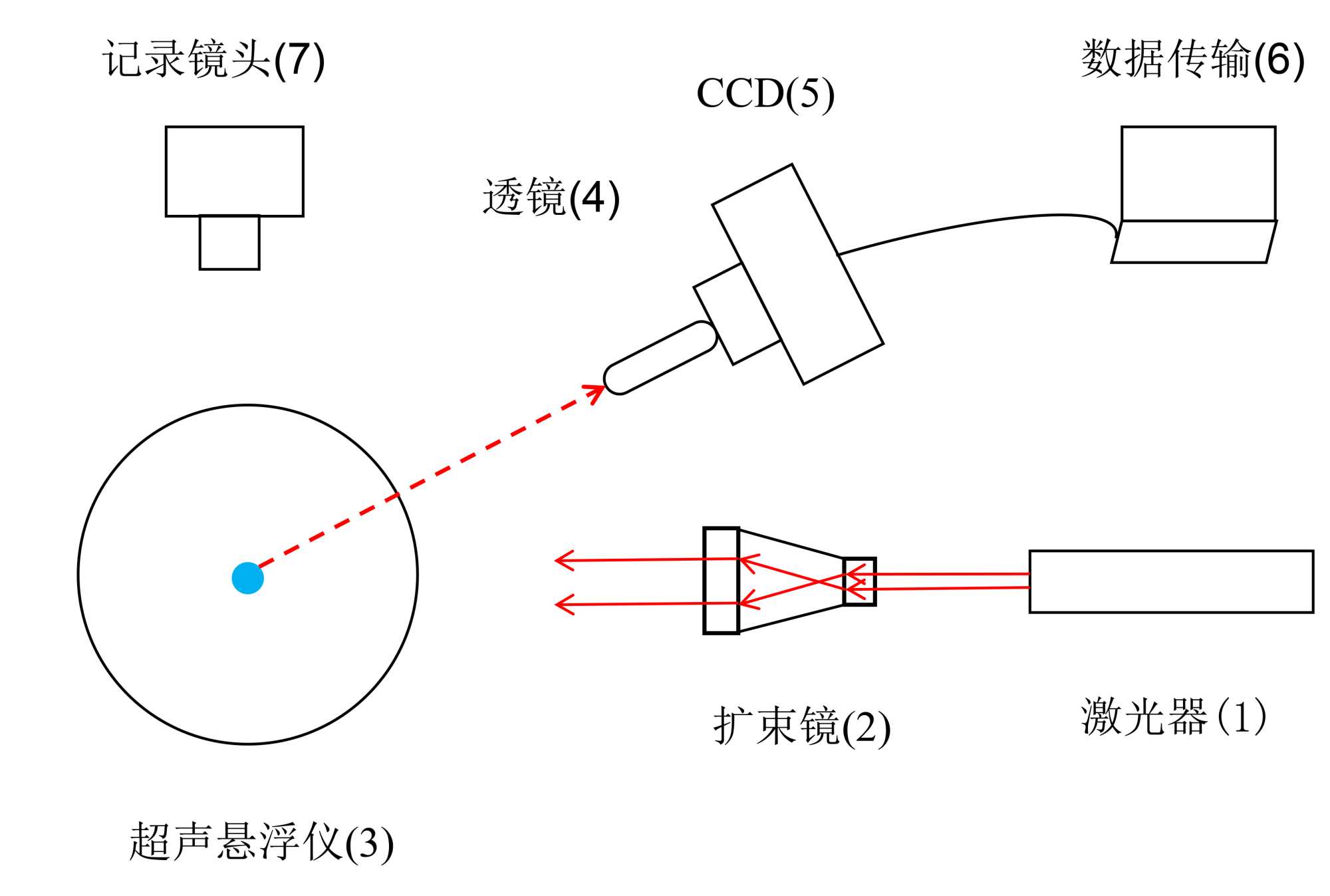 平台搭建用到了以下主要仪器:氦氖激光器(1)、超声悬浮仪(2)、透镜镜筒(4)、接收器CCD (5)。