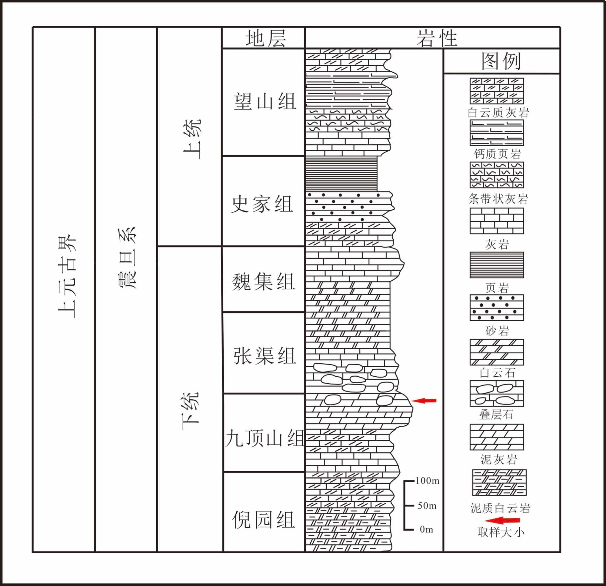 倪园组:它主要包含燧石结核的灰质白云岩、白云质灰岩、泥质白云岩以及岩。厚度大约为372米。